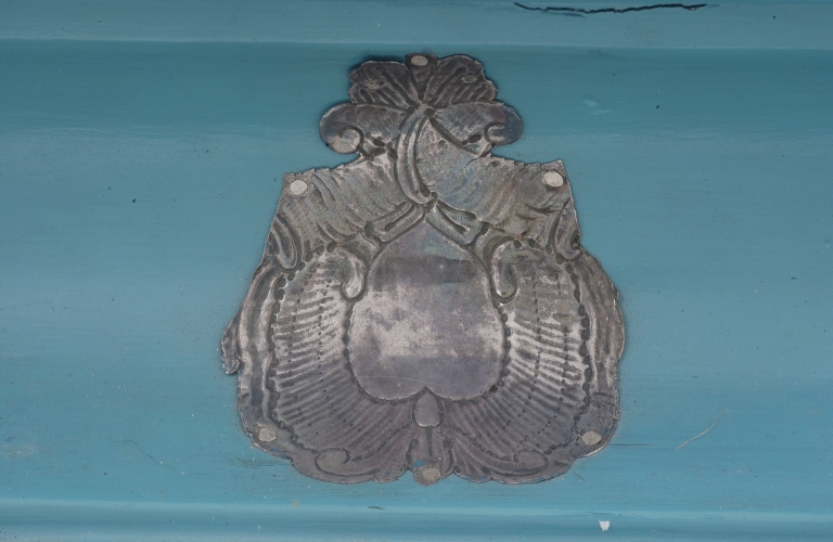 Statut de Vierge à l'Enfant : détail cartouche du socleImmatriculation