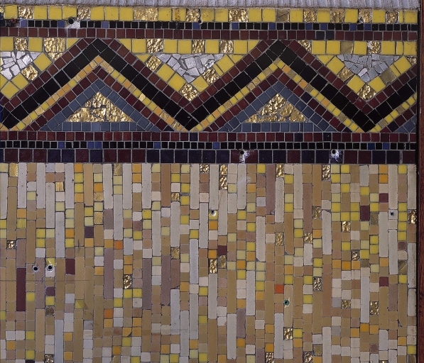 Détail du lambris de mosaïque de la salle des guichetsImmatriculation