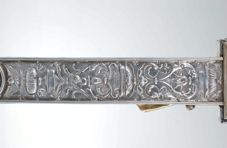 Croix de procession : détail décor estampéImmatriculation