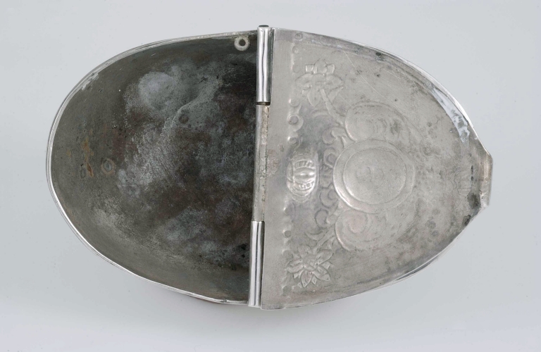 Navette à encens : vue générale du dessus, couvercle ouvertImmatriculation
