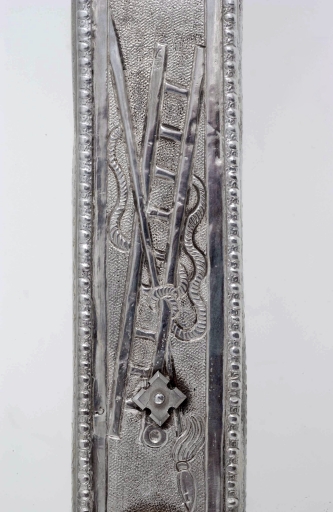 Croix de procession : emblèmes de la Passion, échelle, lance et cordeImmatriculation