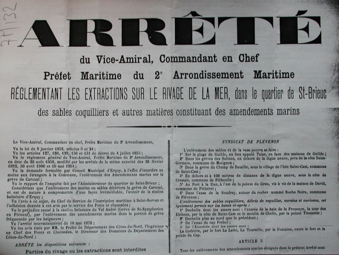 Arrêté pour l'exploitation de la marne et des amendements marins, 1854 (AD 22)Immatriculation