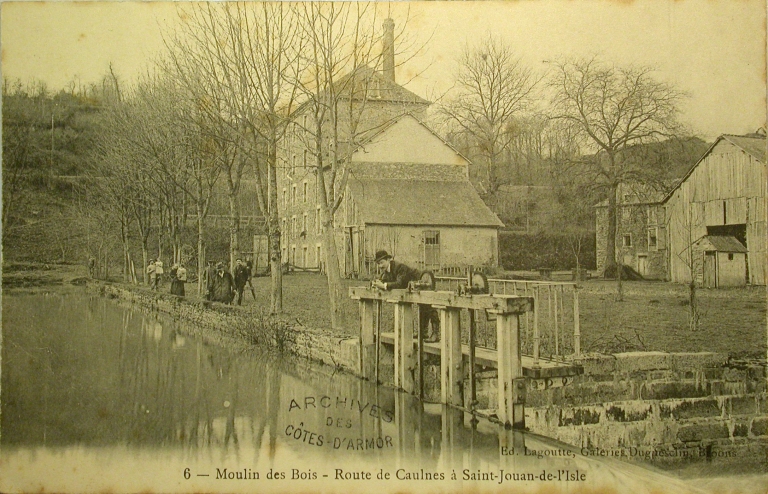 Moulins à blé des Bois, puis moulin à papier, puis minoterie, puis restaurant, actuellement maison (Saint-Jouan-de-l'Isle),