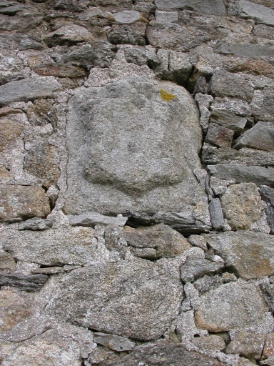 Pierre gravée : écusson de la famille Glé, seigneurie de Lancieux.Immatriculation