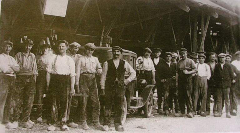 Carte postale ancienne : les polisseurs de la Pyrie (1929).Immatriculation