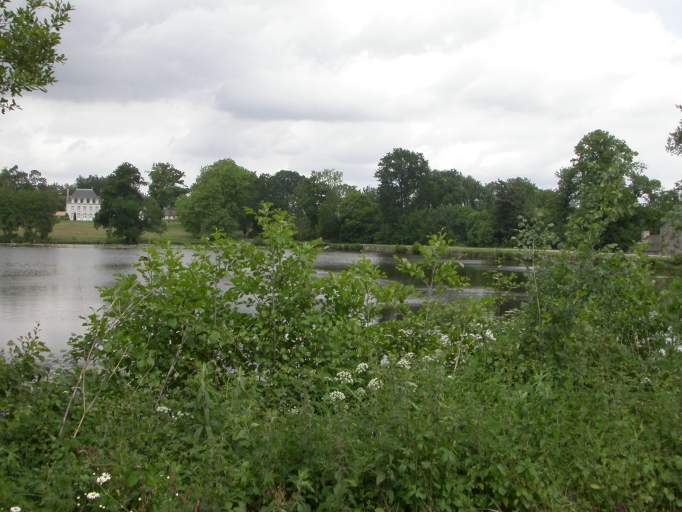 Vue générale du site : logement patronal, étang et site de production à droite.Immatriculation