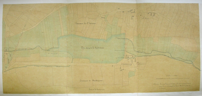 Plan de situation des deux étangs de la Hardouinais et des sites de production (18 septembre 1855).Immatriculation
