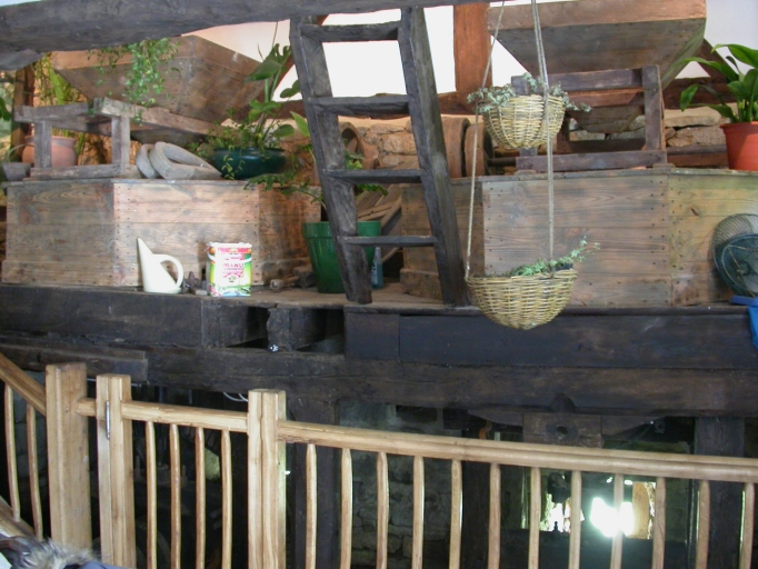 Vue intérieure du moulin restauré en maison : les deux paires de meules conservées.Immatriculation