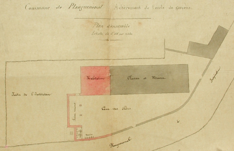 Plan d'ensemble dressé pour les travaux d'achèvement de l'école communale (Beuscher Armand / AD 22)Immatriculation