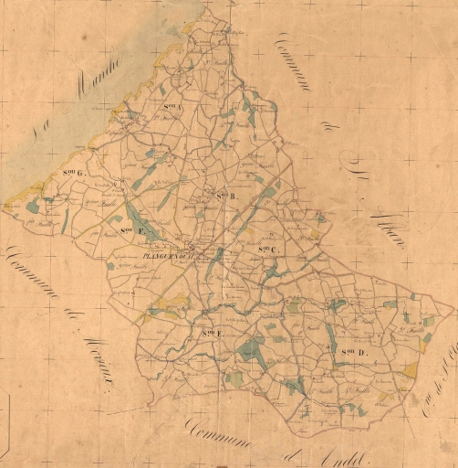 Planguenoual. Tableau d'assemblage des plans cadastraux parcellaires de 1846 (AD 22)Immatriculation