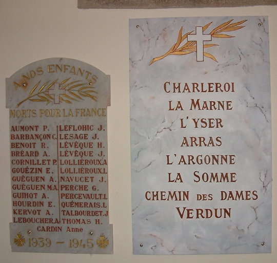 Monument aux morts (autel ; groupe sculpté ; plaques commémoratives des deux guerres mondiales) (Planguenoual fusionnée en Lamballe-Armor en 2019),