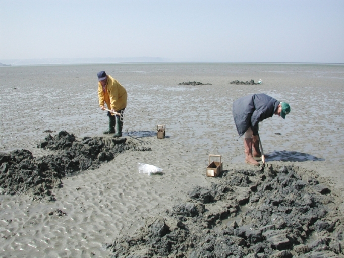 Pêcheur à pied cherchant des vers de vase à la bêcheImmatriculation