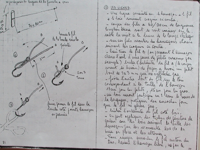 Textes illustrés pour la mise en place d'une ligne de fond : accrochage des hameçons (Jean Aubry)Immatriculation