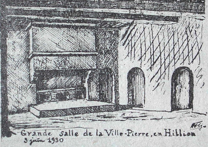 Grande salle du manoir de la Ville-Pierre d'après croquis d'Henri Frotier de la Messelière (1930)Immatriculation