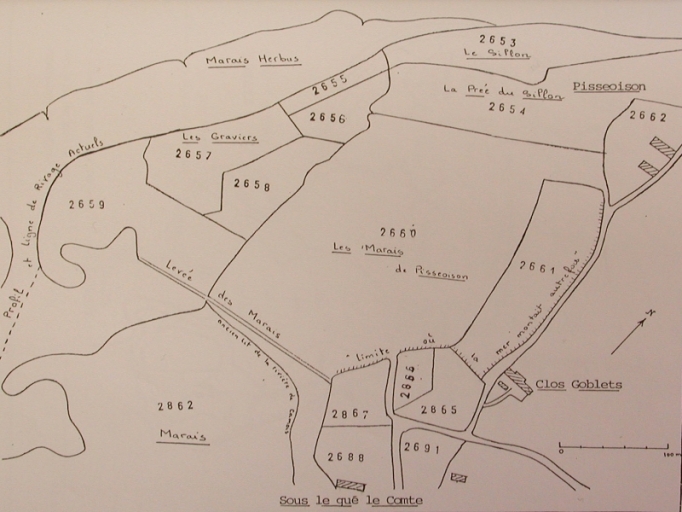 Dans : "L'industrie ancienne du sel dans la Penthièvre littoral"/ Jacques-Henri Clément, Mémoire de thèse de pharmacie, Rennes, 1989, p. 49.