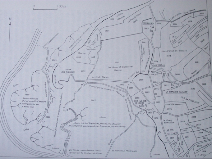 Dans : "L'industrie ancienne du sel dans la Penthièvre littoral"/ Jacques-Henri Clément, Mémoire de thèse de pharmacie, Rennes, 1989, p. 50.Phototype : plan.
