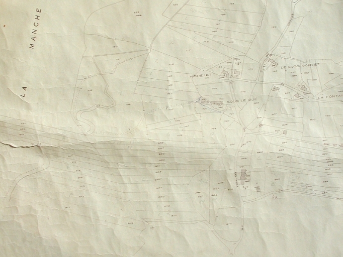 Extrait du plan cadastral de 1847, mis à jour en 1959 : parcelles concédées avec un droit de pacageImmatriculation