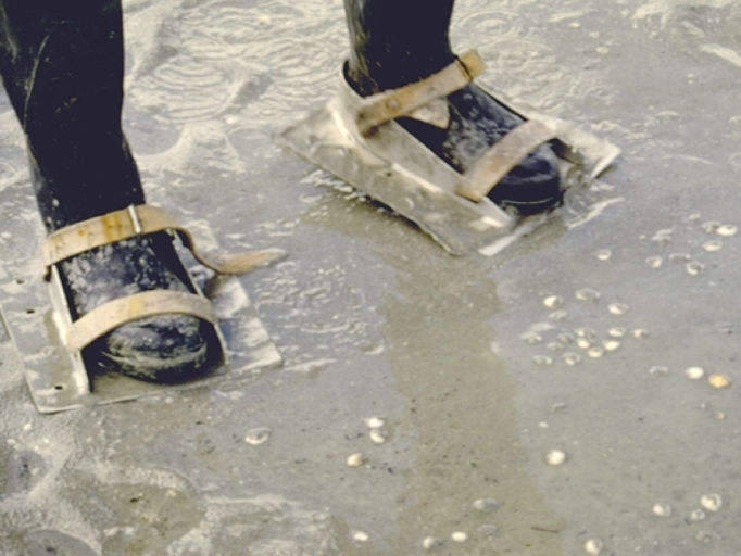 Vue de détail des patins de vase pour piloter dans les filières et faire remonter les coquesImmatriculation