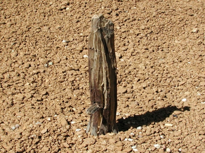 Vue de détail d'un piquet de raye enfoui dans le sableImmatriculation