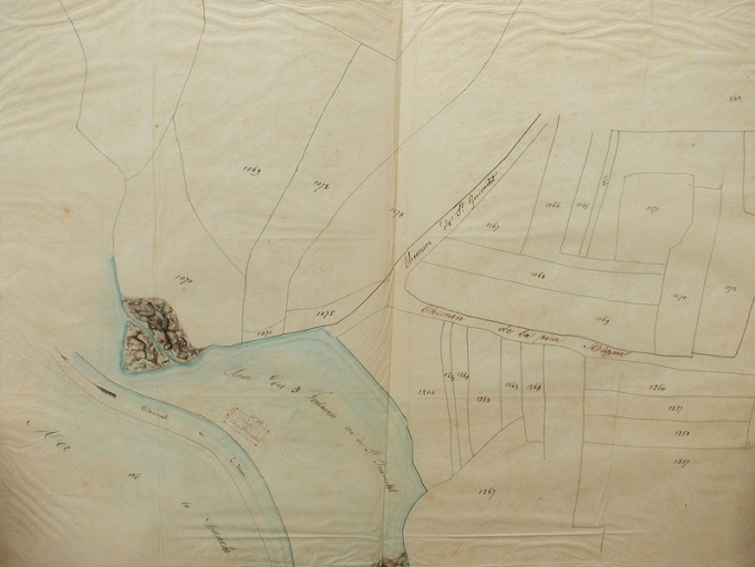 Dans : "Demande de concession temporaire de M° Brizeux"/ extrait plan du cadastre d'Hillion, 1847, section E, 3e et 4e feuille.Plan cadastral.