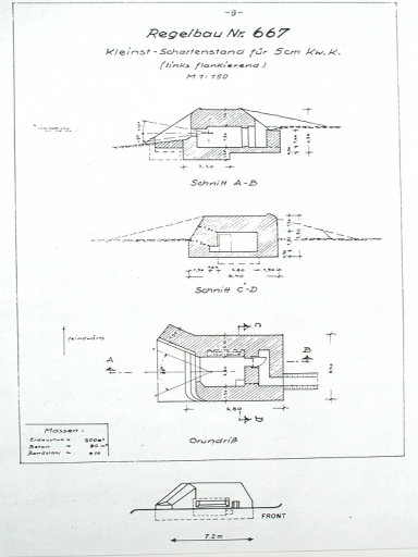 Plan d'une casemate type Regelbau n° 667 (plan allemand, collection Grimaud)Immatriculation