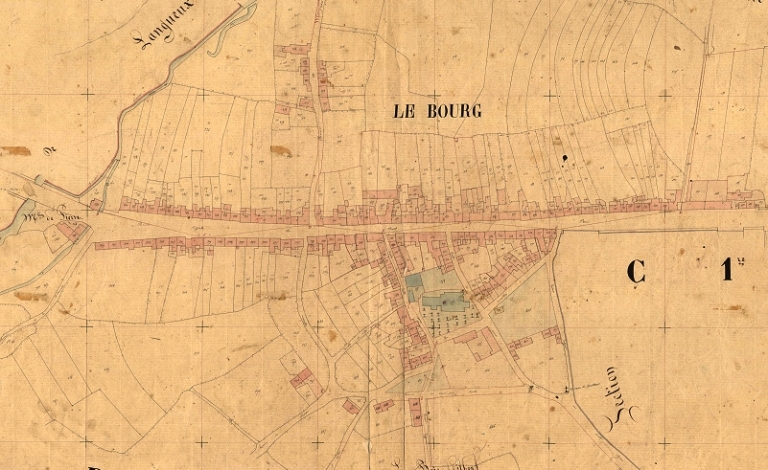 Yffiniac, le Bourg. Extrait des plans cadastraux parcellaires de 1847 (AD 22)Immatriculation