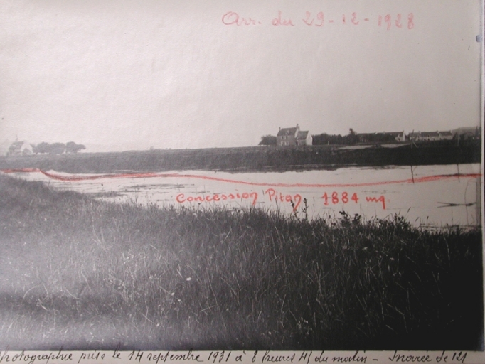 Concession Piton du Moulin de la Grève dans le marais d'Yffiniac, par grande marée de 121, le 14 septembre 1931(AD 22)Immatriculation