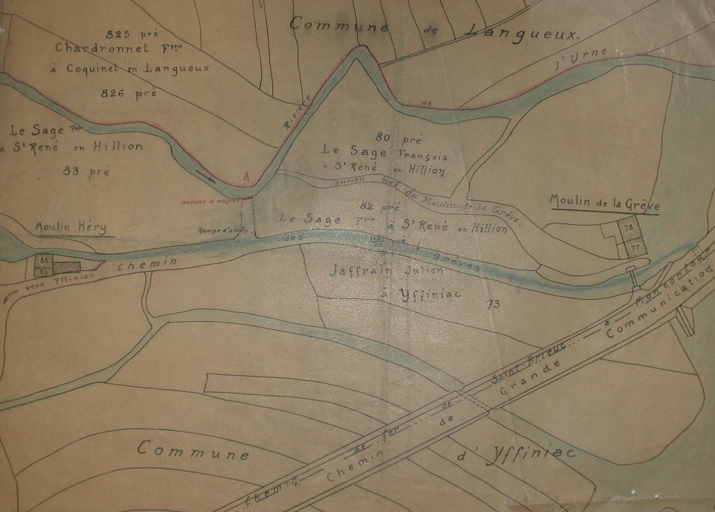 Plan de 1922 : chemin de grande communication n°6 entre le moulin Héry et le moulin de la GrèveImmatriculation