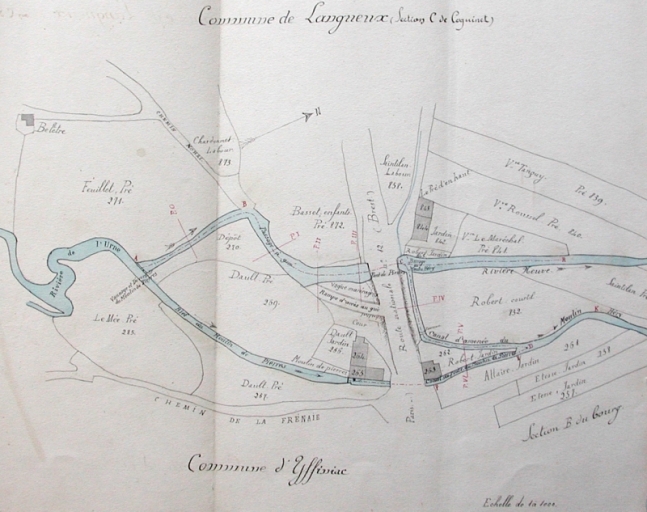 Projet de réglementation du moulin Héry en 1882 : plan des abords où le terrain déversoir sera reconstruitImmatriculation