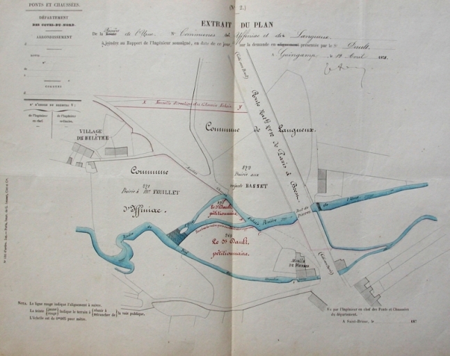 Pétition du sieur Claude Rault en 1878 pour suppprimer le faux bras de la rivière entre le nouveau chemin et le déversoir du moulin de Pierres (AD 22)Immatriculation