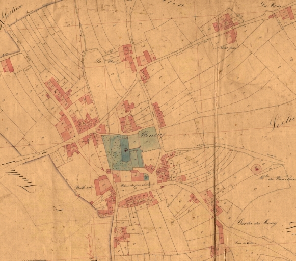 Pléneuf-Val-André, le bourg. Extrait des plans cadastraux parcellaires de 1846 (AD 22)Immatriculation