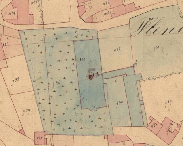 Extrait des plans cadastraux parcellaires. Emplacement du cimetière de Pléneuf en 1846 (AD 22)Immatriculation