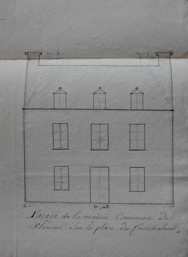 Plan de construction de la mairie dressé probablement en 1835. Elévations antérieures (AD 22).Immatriculation