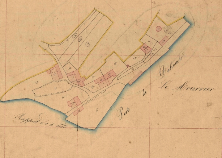 Pléneuf-Val-André, Dahouët. Extrait des plans cadastraux parcellaires de 1846 (AD 22). Rive gauche du port de Dahouët.Immatriculation