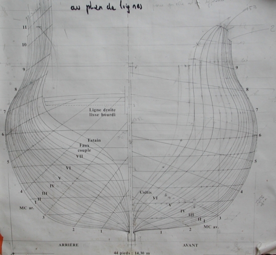 Plan de formes du vaisseau dessiné par Alain Marie GautierImmatriculation