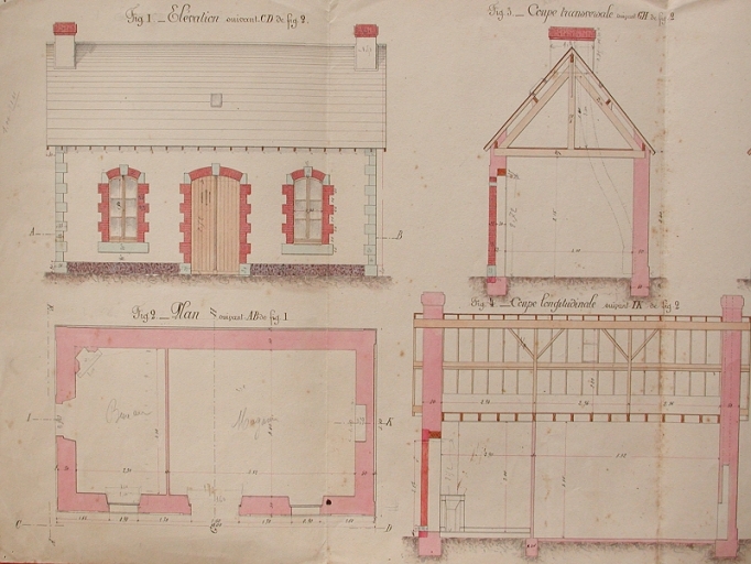 Construction d'un bâtiment pour bureau et magasin : plan et coupes, 1893 (AD 22)Immatriculation