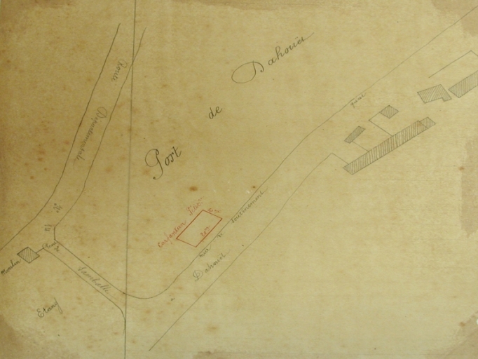 Demande de l'armateur Carfantan d'une concession au fond du port pour enclos en bois (10 m x 10) et dépôt de bois de construction baignés par la mer, plan de 1887 (AD 22)Immatriculation