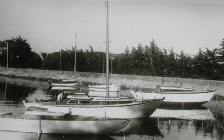 Le port de Dahouët au début des années 1960 avec l'ancienne digue du Bignon et les plantations de résineux devant le marais du BignonImmatriculation
