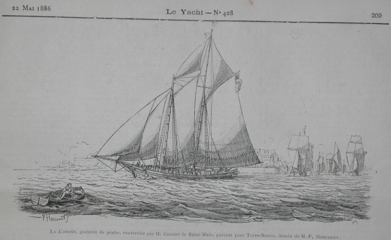 Plan de coque de la goélette de pêche la Mouche, construite par F. Gautier en 1885 (L'Illustration 1886)Immatriculation