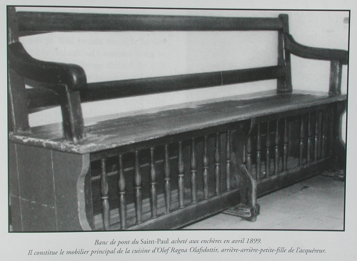 Banc du Saint-Paul dans un intérieur islandais aujourd'hui du navire hôpital Saint-PaulImmatriculation