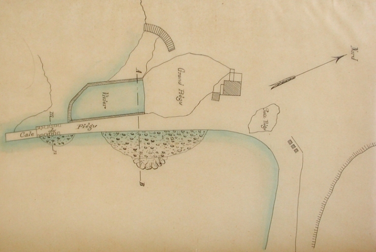 Plan de l'avant-port de Piégu en 1904 avec le vivier (AD 22)Immatriculation