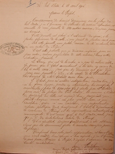 Demande de concession faite par le sieur Proudhon le 6 mai 1905 : lettre argumentaire (AD 22)Immatriculation