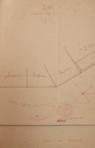 Plan des quais devant les établissements Carfantan avec la machine et l'aire à battre, 1884 (AD 22)Immatriculation