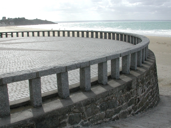 La rotonde semi-circulaire pavée avec le dessin d'une rose des vents et son garde-corps en graniteImmatriculation