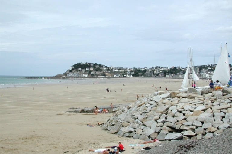 La plage et les enrochements de la digue-promenade contemporaineImmatriculation