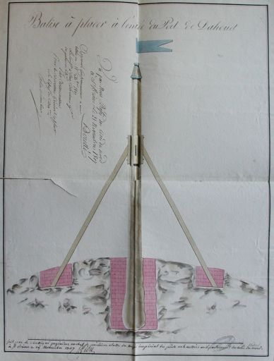 Plan aquarellé : balise en bois sur la Petite Muette, 1807 (AD 22).Immatriculation
