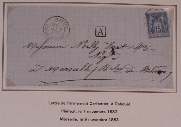 Lettre de l'armement Carfantan de Dahouët, 1883 (Collection Grimaud)Immatriculation