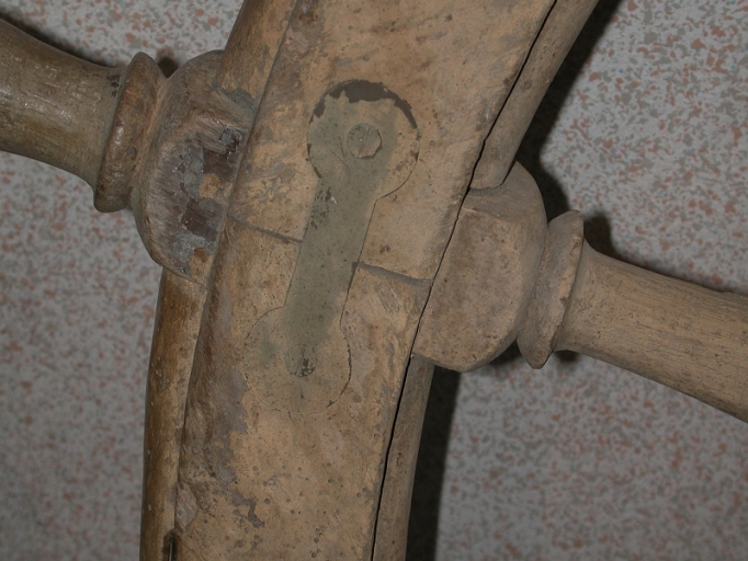 Détail d'assemblage de la barre à roue du navire Léon (Atelier du Patrimoine)Immatriculation