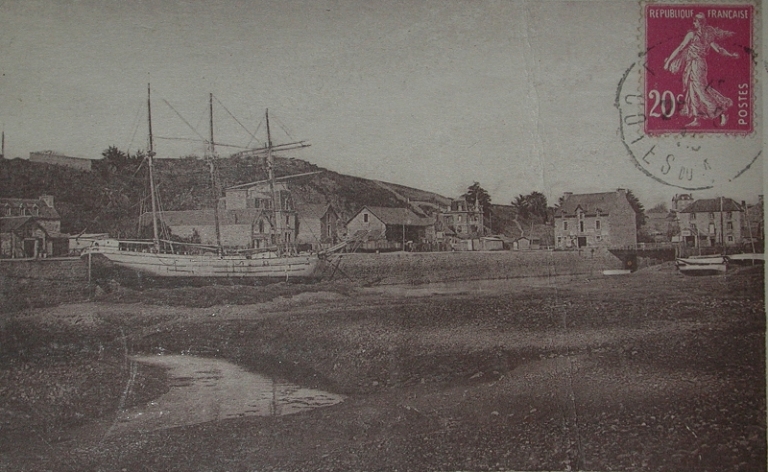 Photographie, carte postale du Léon, échoué dans la vasière du port de Dahouët avant 1940 (collection Grimaud)Immatriculation