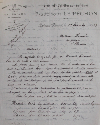 Francisque Le Péchon et Cie, 1919 : bois du Nord et pitchpin (collection Grimaud)Immatriculation